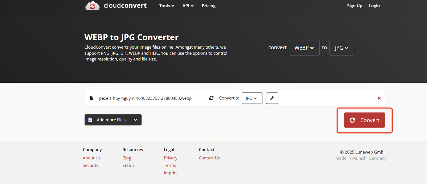 步骤三: 进入转换页面后,按照提示上传你的WebP图片文件。
