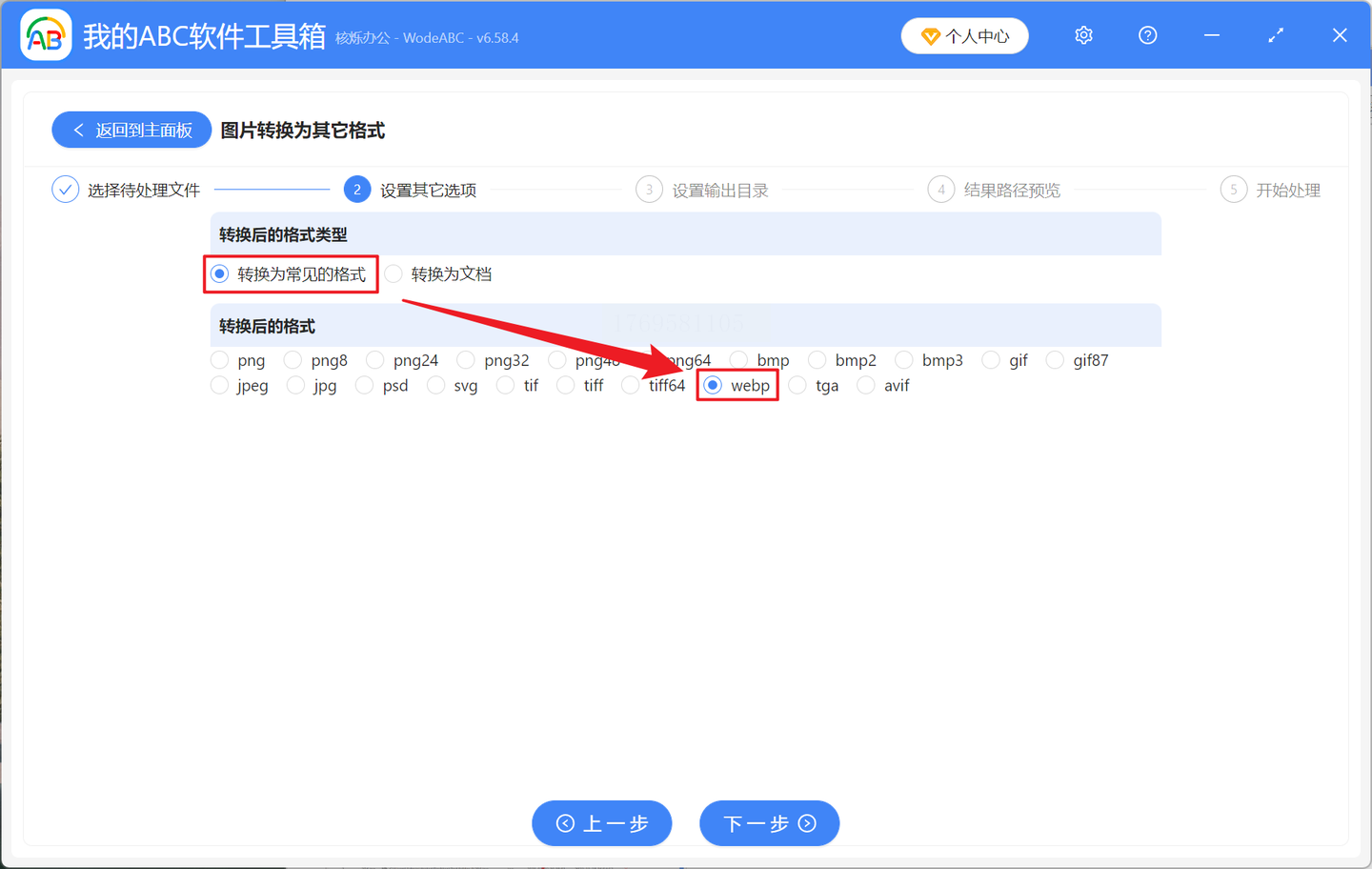 3. 设置转换参数:在格式选择处勾选“WEBP”,如果需要调整尺寸或裁剪,可在“图片参数”里设置宽度和高度(保持比例选“等比缩放”)。