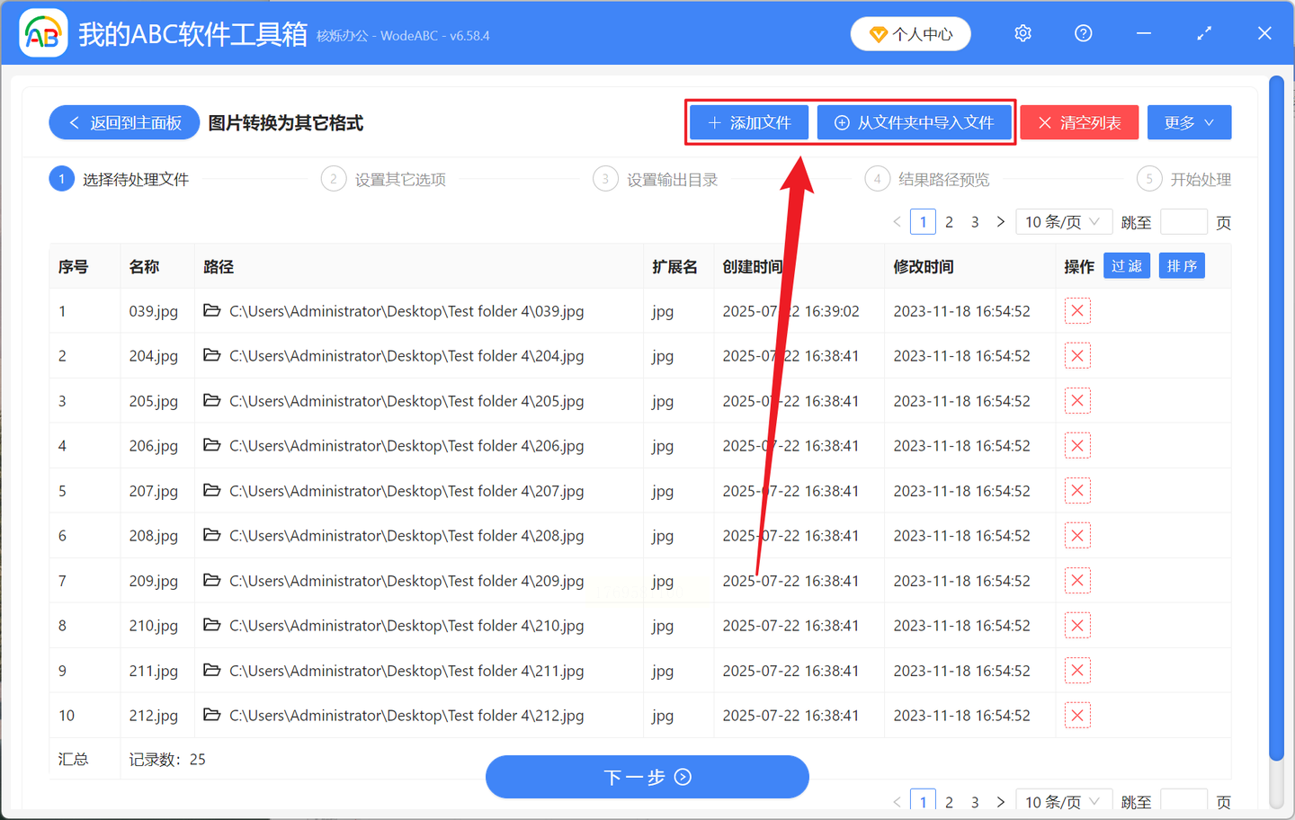 2. 添加图片:点击“添加文件”按钮,支持批量导入或直接拖拽文件夹,导入后会显示缩略图预览。