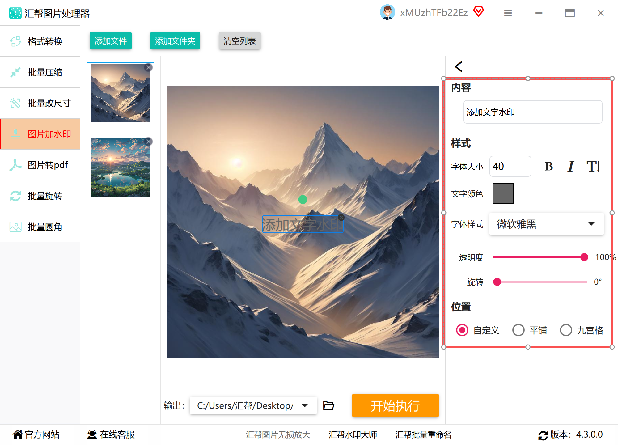 这款国产软件专为图像批处理场景优化设计,其特色在于将复杂的水印设置转化为直观的视觉化操作。软件采用向导式交互界面,有效降低用户的学习成本。