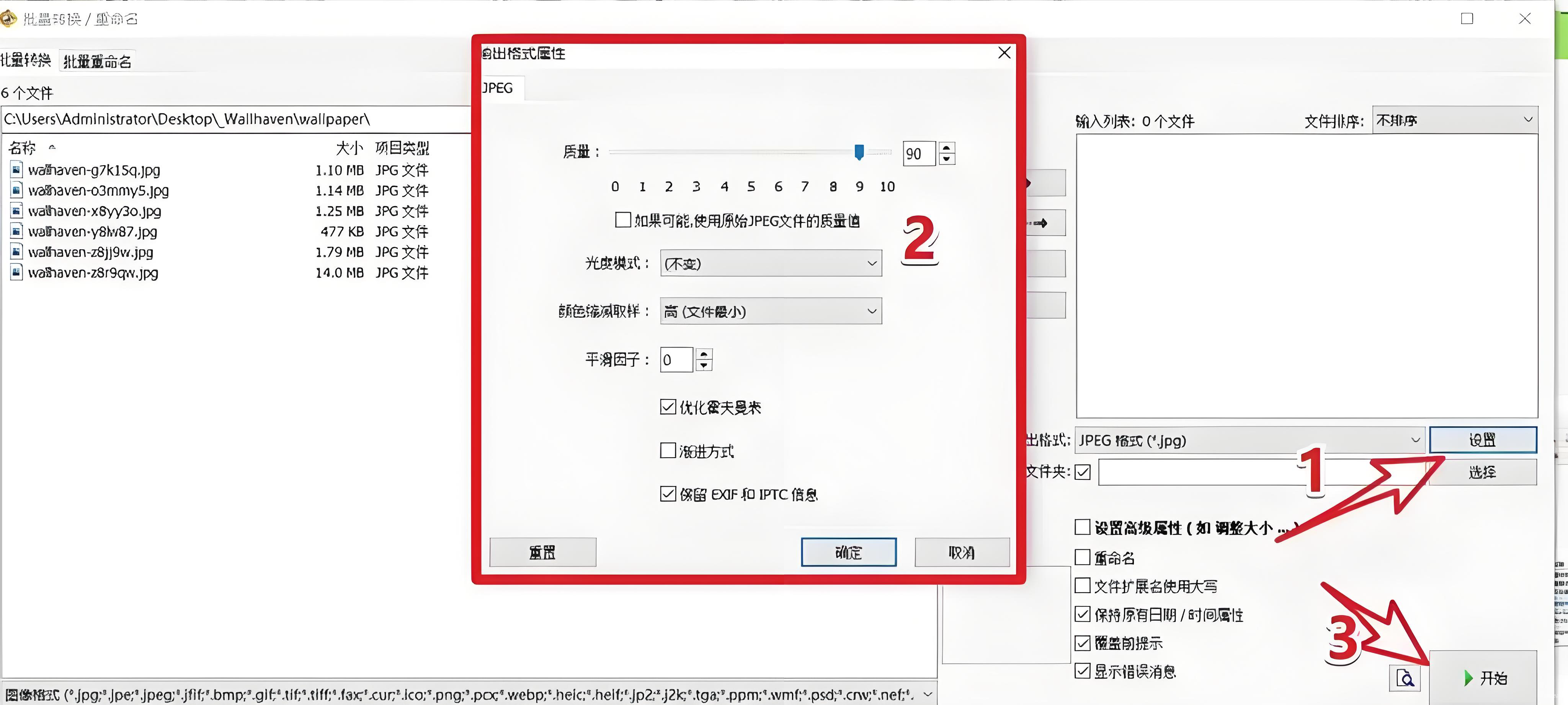 步骤五:设置输入输出目录路径,指定文件格式转换参数与质量压缩比例