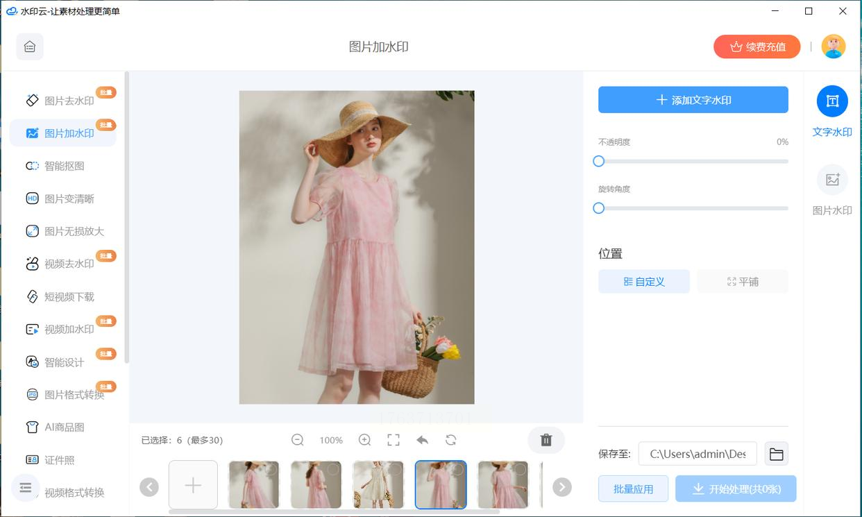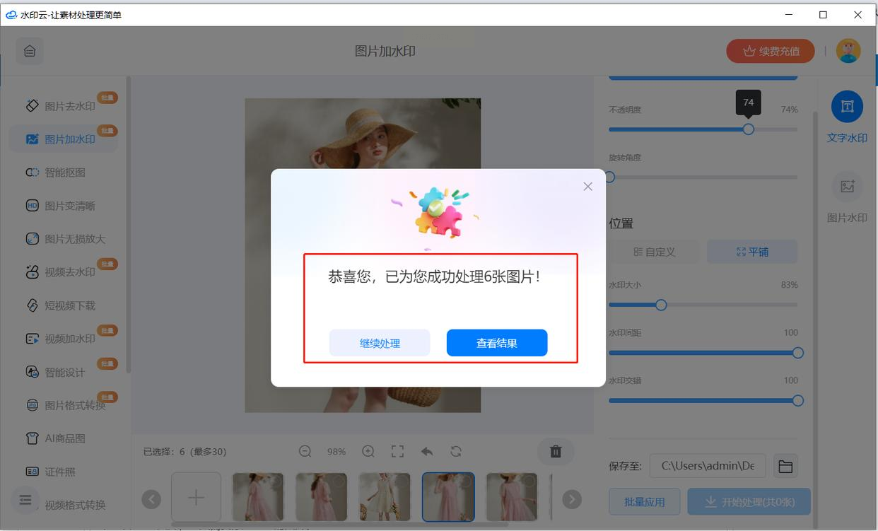 第五步:处理并下载。点击“开始处理”按钮,系统会自动为所有图片添加水印。处理完成后,点击“下载”按钮就能保存到电脑。如果是多张图片,系统会自动打包成ZIP文件。