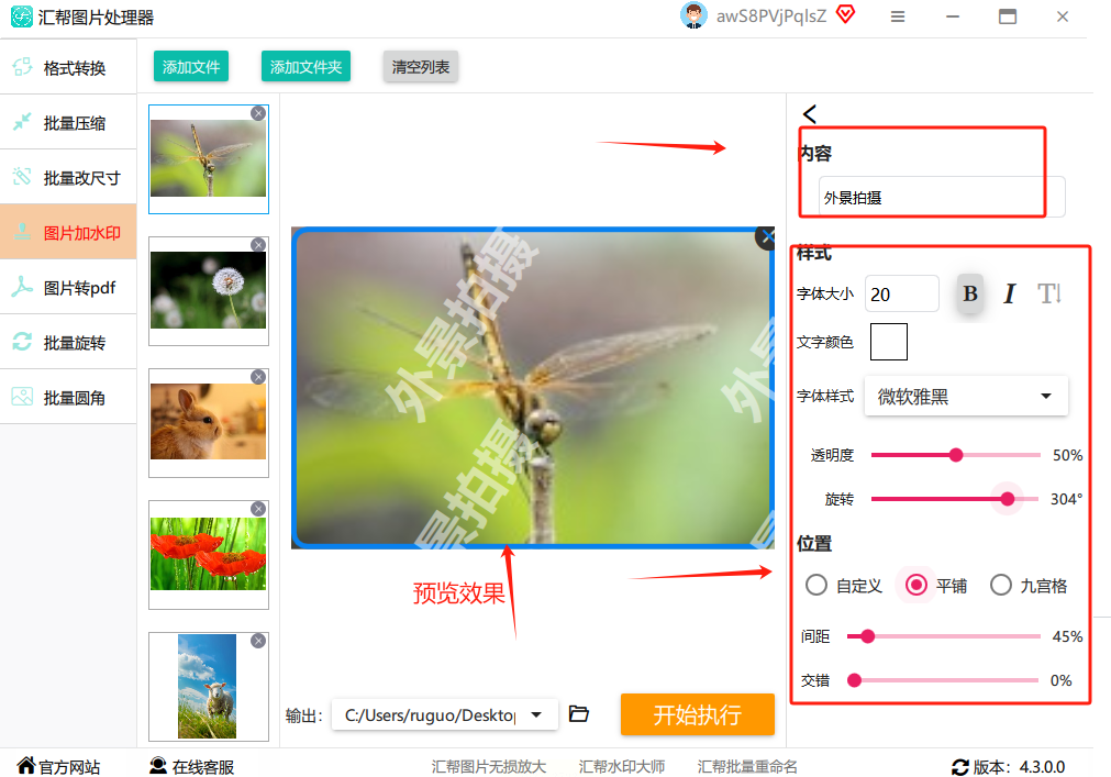 第五步:设置输出路径。点击“浏览”按钮,选择一个文件夹作为保存位置。建议新建一个专门文件夹,避免覆盖原图。最后点击“开始执行”,进度条会显示处理状态。完成后软件会自动打开保存文件夹,让你立即查看效果。
