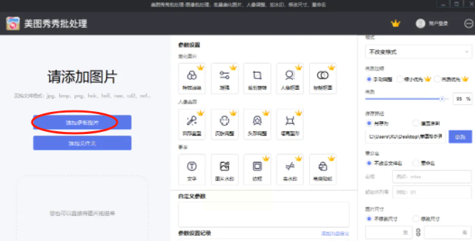 第一步:打开美图秀秀批处理功能。在软件主界面找到“批量处理”选项并点击进入。然后点击“添加多张图片”,选择需要添加水印的所有照片。