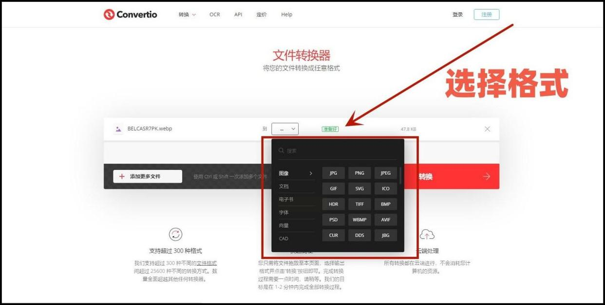 这是一个非常方便的在线文件格式转换平台。你不需要在电脑上安装任何程序,只需打开浏览器就能使用。它支持各种各样的文件类型转换,不仅仅是图片。