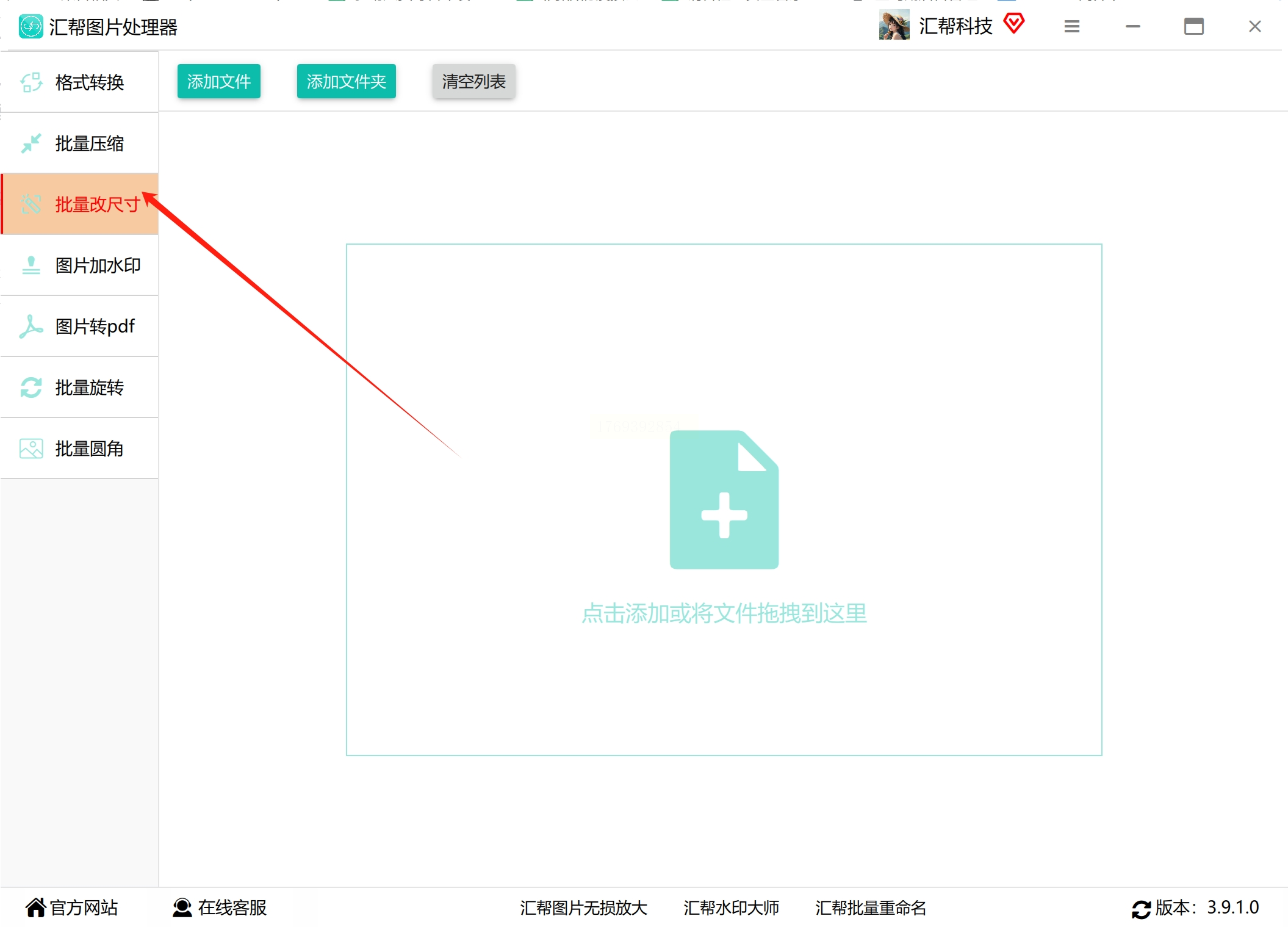 2. 功能选择:打开软件后,左侧导航栏选择「批量改尺寸」功能模块