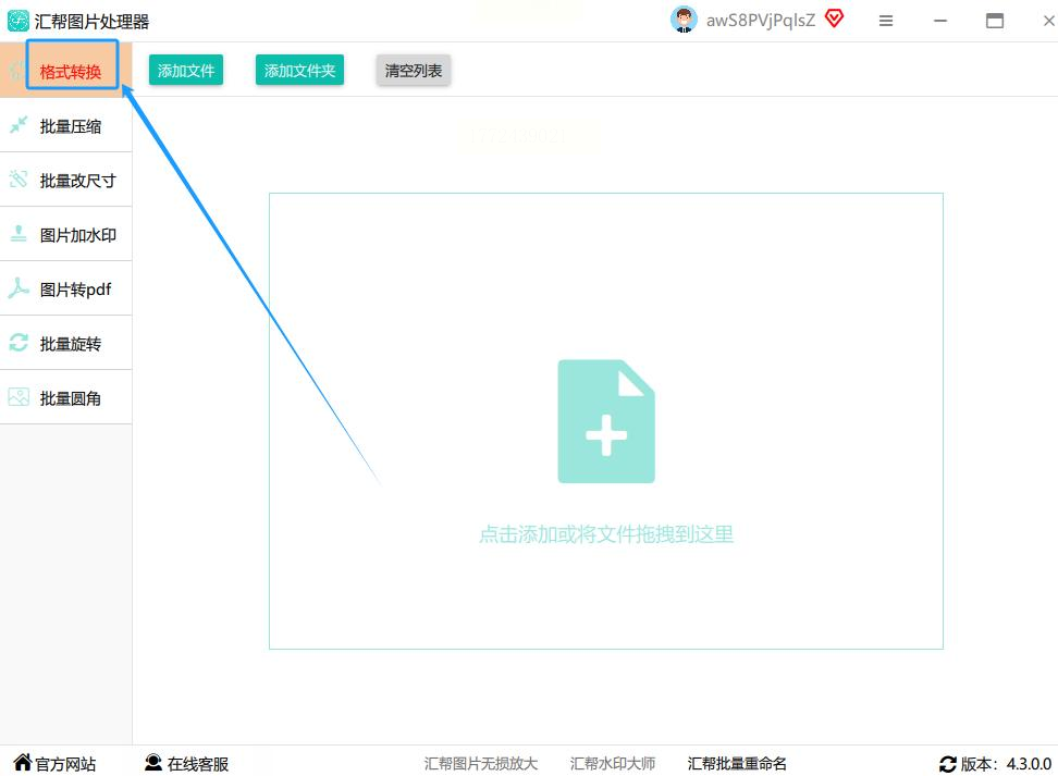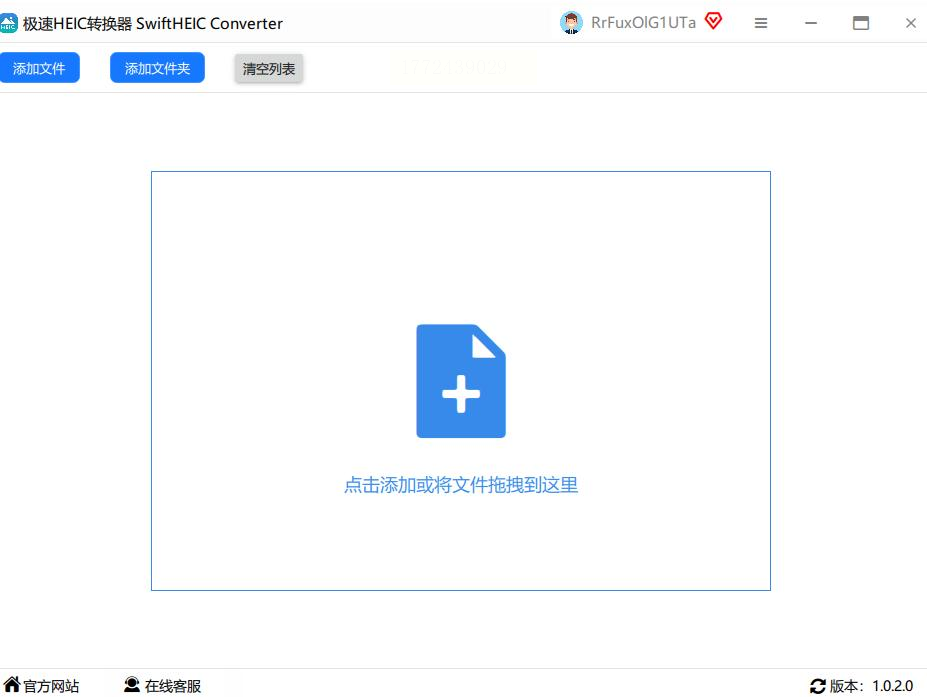 点了"格式转换"之后,中间区域会是空的。这时候你看右边或者旁边,一般会有个大按钮,上面写着"添加文件"或者"添加文件夹"。我通常都是直接拖文件夹进去,比如手机导出的HEIC照片都存在电脑的"手机相册HEIC"文件夹里,直接把这个文件夹拖到软件里就行,超方便,不用一张张选!