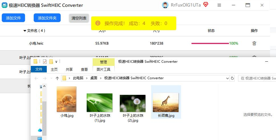 转换完成后,软件会提示成功,你直接打开输出文件夹,所有HEIC都变成JPG了,文件名也和原来一样,方便核对。
