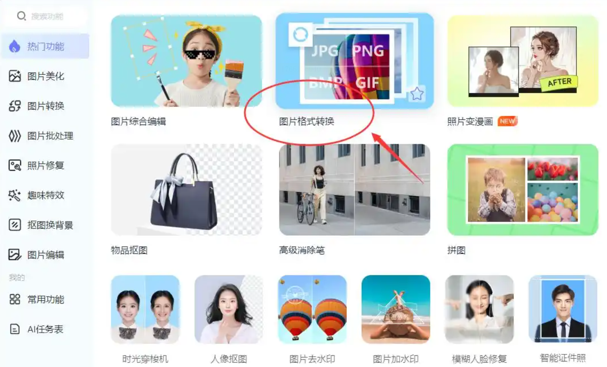 1. 进入功能模块:打开改图鸭官网,在首页功能区选择“图片格式转换”,进入专用转换界面。
