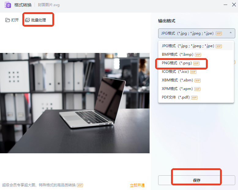 场景适配:适合办公文档配图(如将流程图、图表SVG转为PNG插入Word),支持与WPS会员云空间同步,方便跨设备调用。