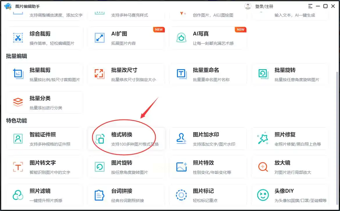 步骤一:启动软件,其主页往往就是功能入口。直接点击“图片格式转换”这个核心功能图标。