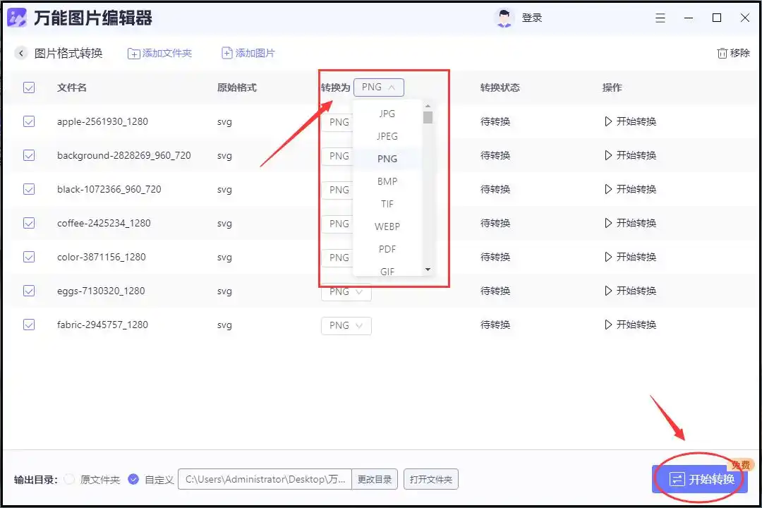 步骤二:文件导入后,软件界面会清晰列出所有待处理图片。在上方的输出格式选项中,将目标格式切换为“PNG”。