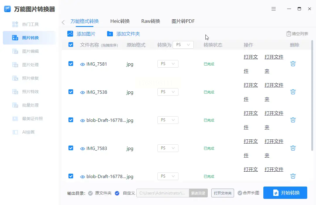 4. 执行转换:点击“开始转换”,状态栏显示每个文件的处理状态(绿色完成/红色失败)。
