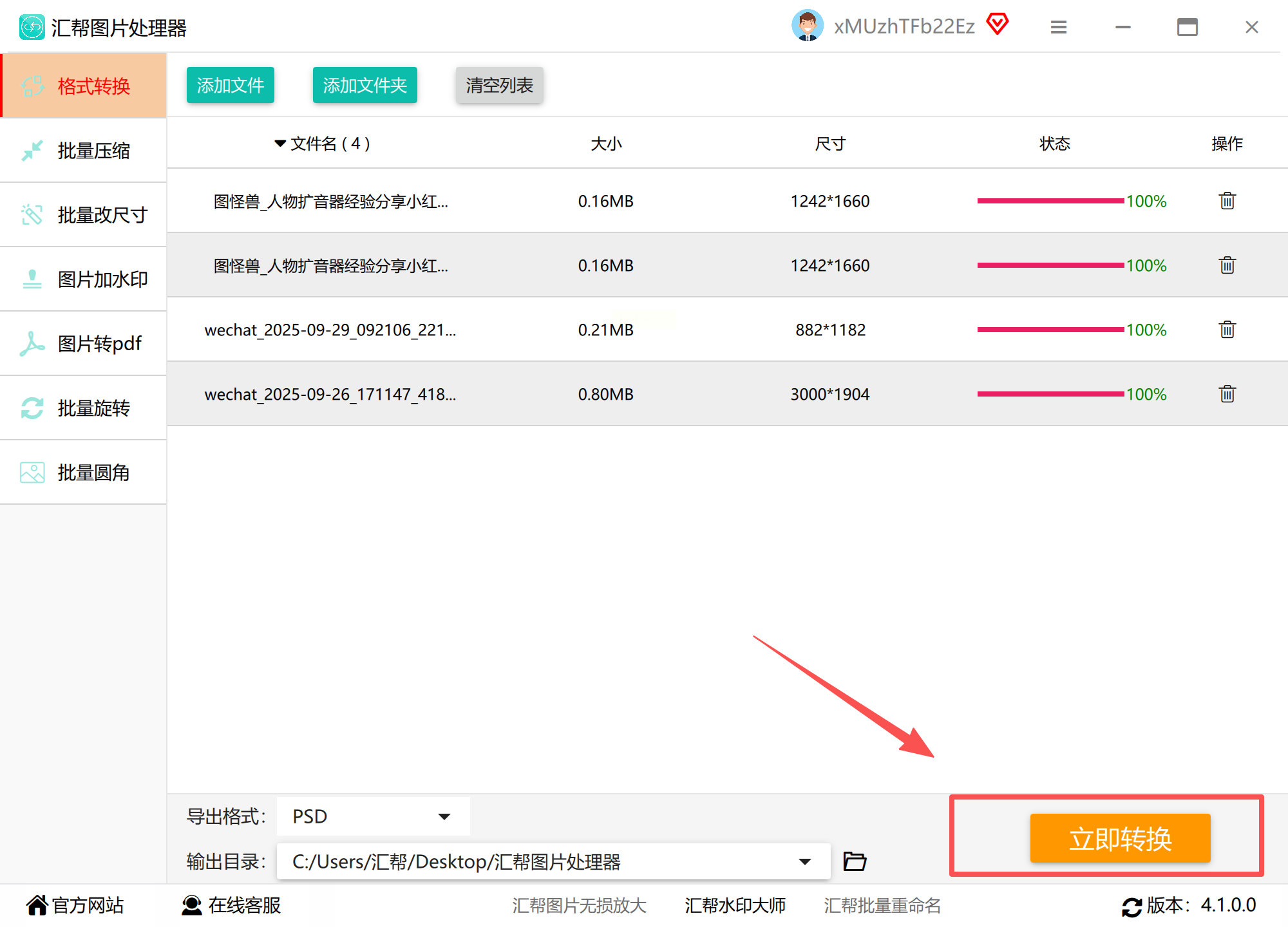3. 开始转换:点击“Convert”按钮,等待进度条完成(网络环境良好时约30秒/张)。