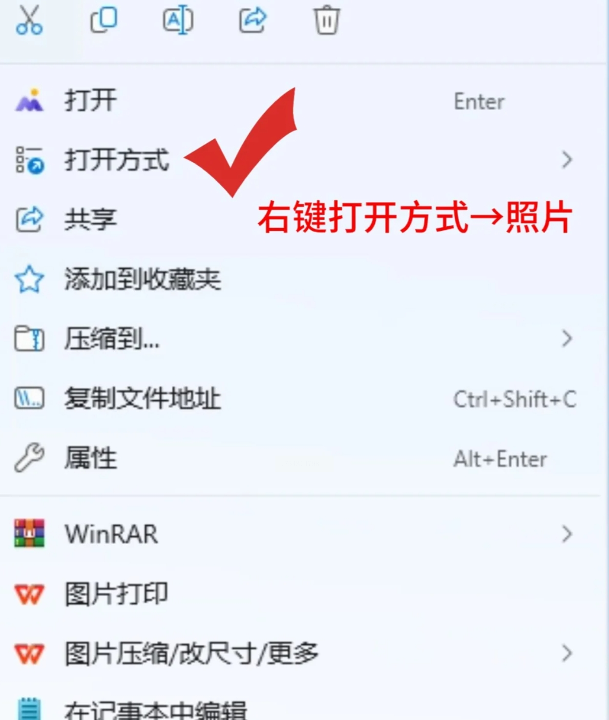 1. 右键打开图片:选中WebP文件 → 右键「打开方式」→ 选「照片」应用。