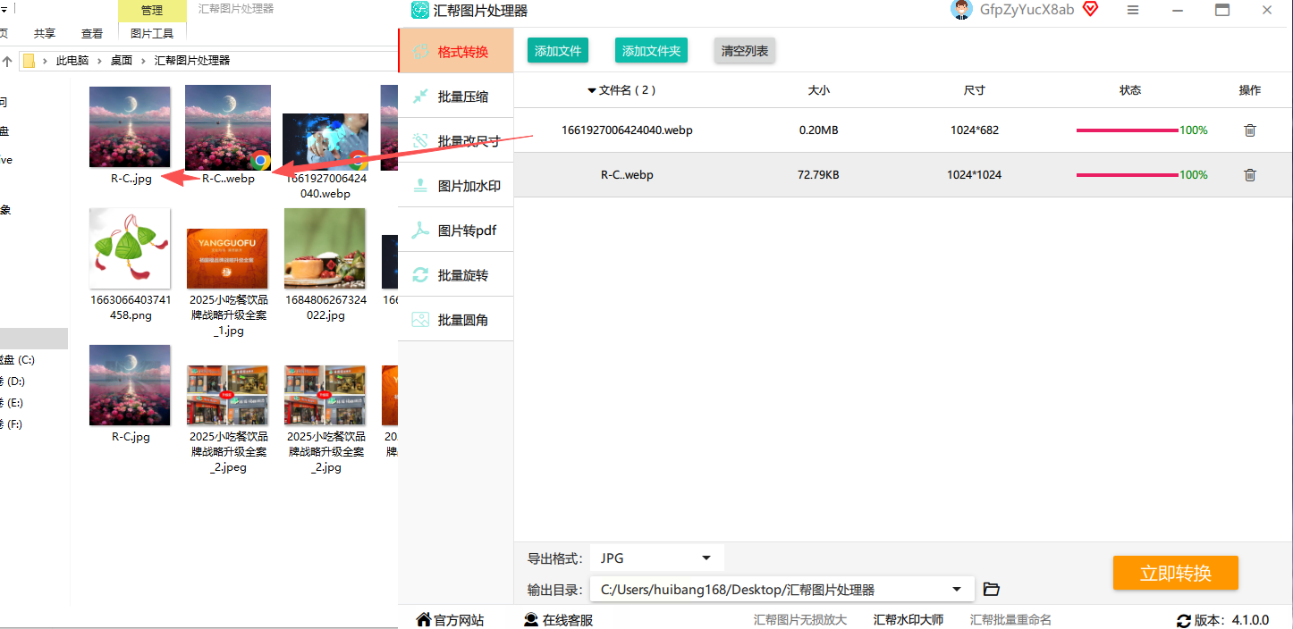 步骤四:转换完成后,软件会在你设定的目录下生成新的JPG图片,原始WebP文件会被完整保留,不会受到影响。