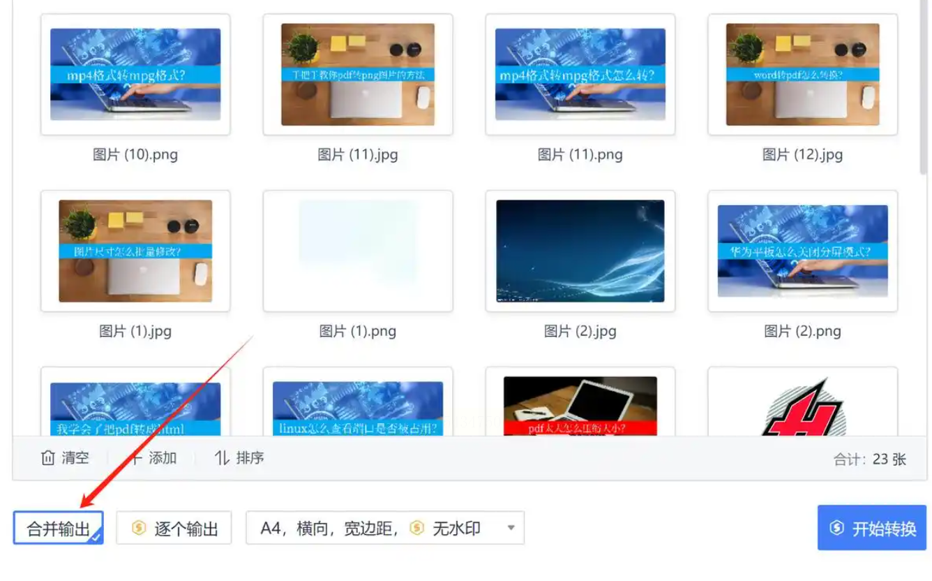 5. 开始转换:顺序调整好之后,点击“开始转换”或“合并PDF”按钮。