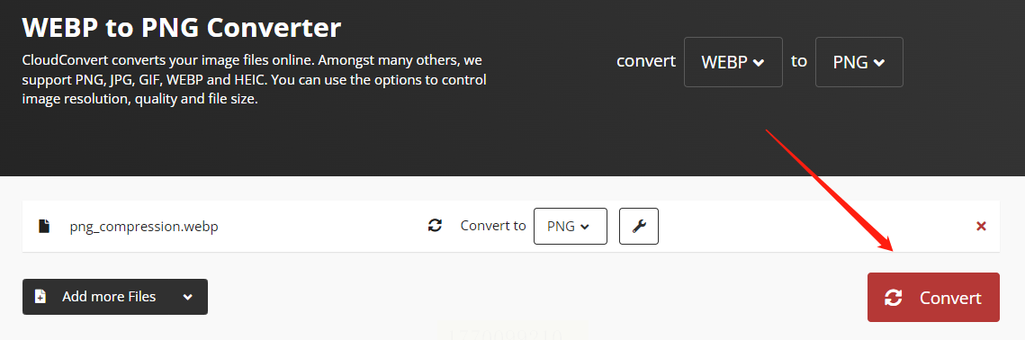 1. 打开浏览器访问CloudConvert官网(注意:这里仅作平台说明,不提供具体网址),在功能区找到"Convert WEBP to PNG"选项。页面会自动生成格式转换配置,无需额外设置参数。