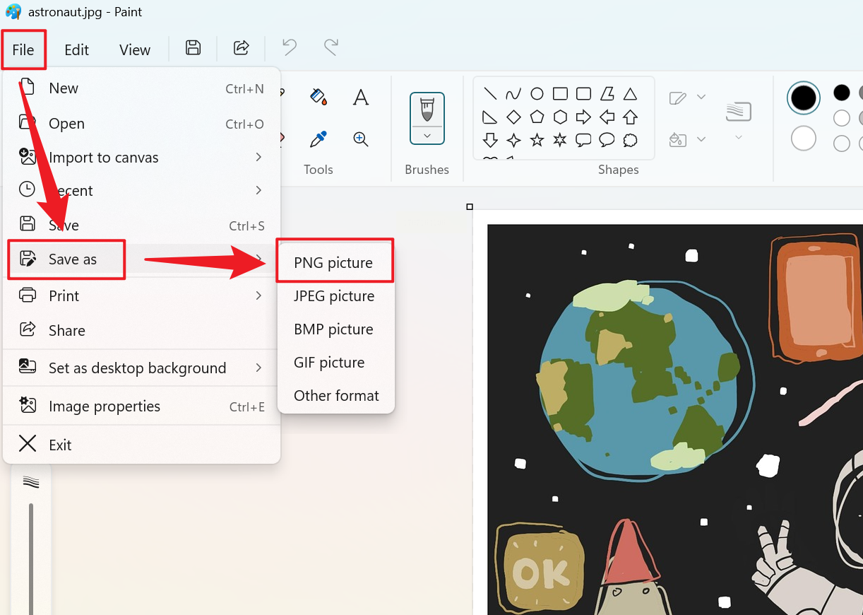 如果你不想安装第三方软件,系统自带的画图工具就能完成基础转换。