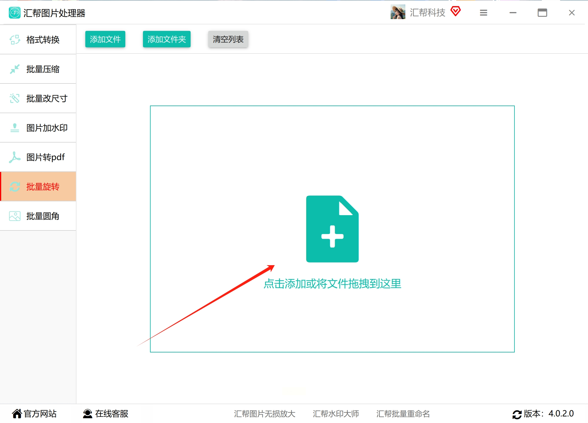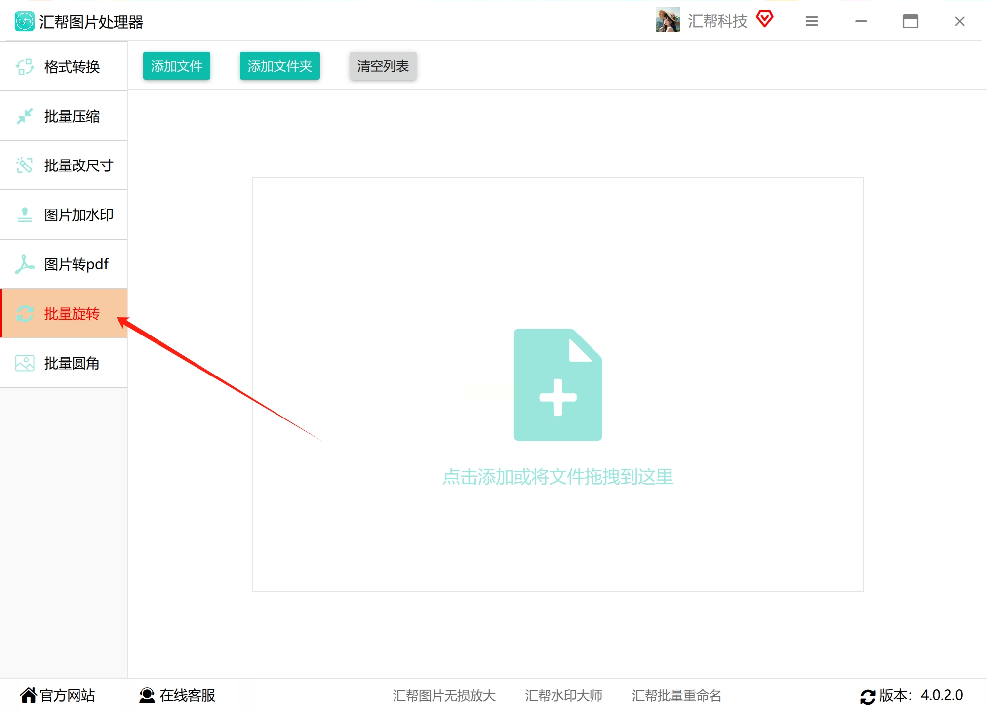 1. 启动软件并选择功能:在计算机上安装并运行“汇帮图片处理器”应用程序。进入主界面后,留意左侧的功能导航栏,找到并点击“批量旋转”或类似命名的选项,以进入照片旋转处理模块。