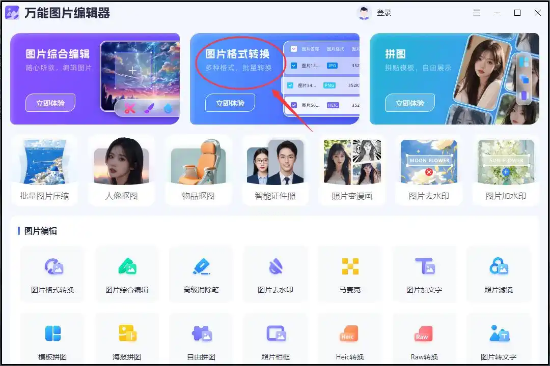 步骤一:打开软件,选择“图片格式转换”功能,导入需要处理的SVG文件。