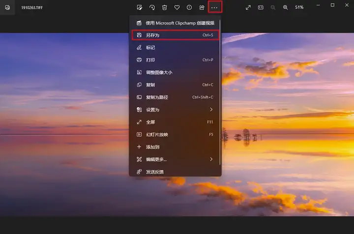 2. 打开后,在图片右上角点三个点(···),或者按键盘Ctrl+S,会弹出“另存为”窗口。