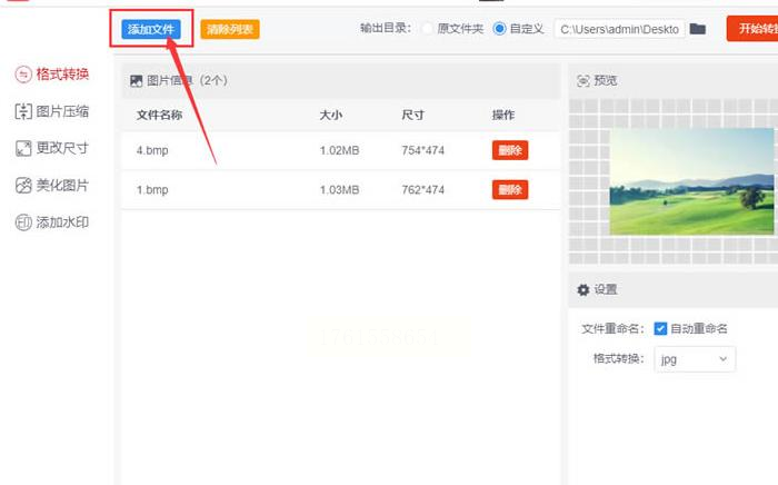 添加BMP图片有两种方式:一是点“添加文件”按钮批量选择,二是直接把图片拖到软件窗口里,特别适合处理大量文件。
