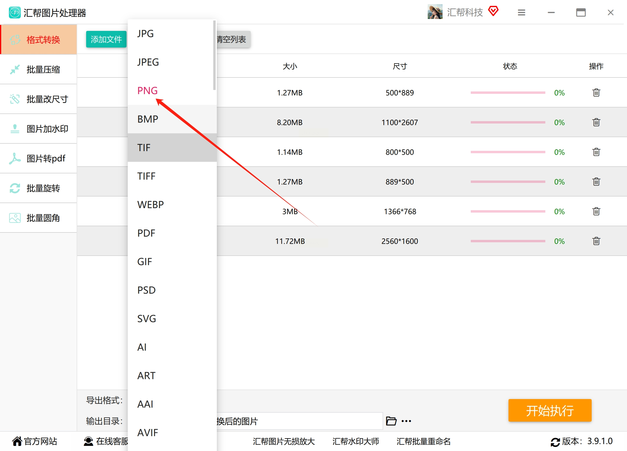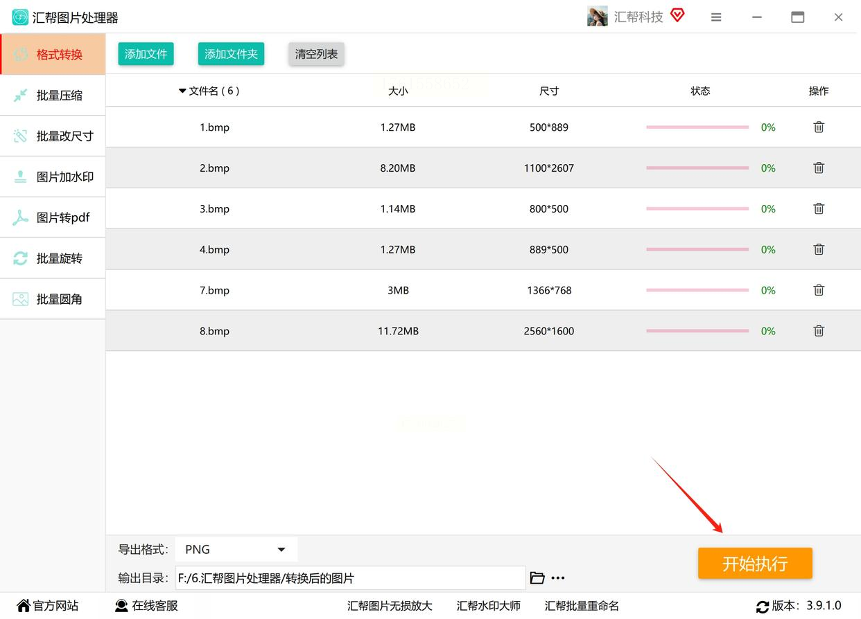 设置输出格式为PNG,然后点击“开始执行”。软件会显示进度条,你可以随时查看转换情况,完成后文件会保存到你指定的路径。