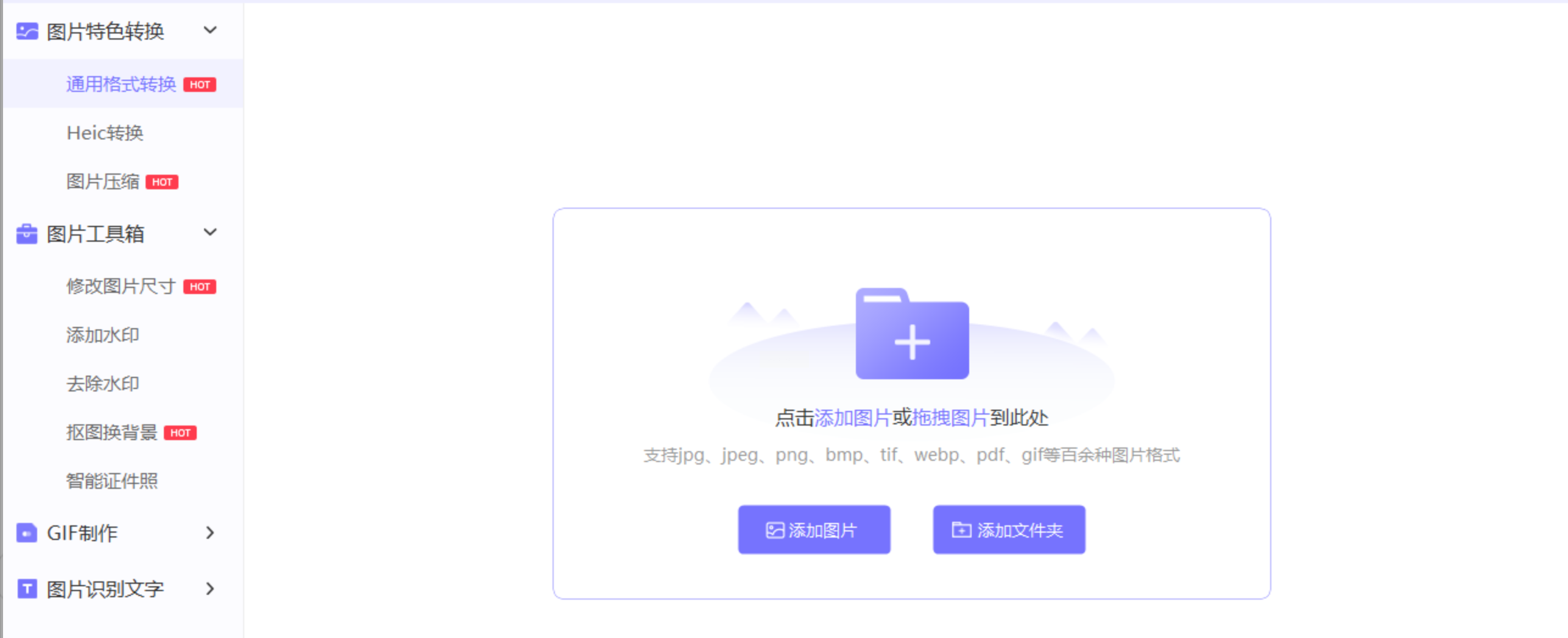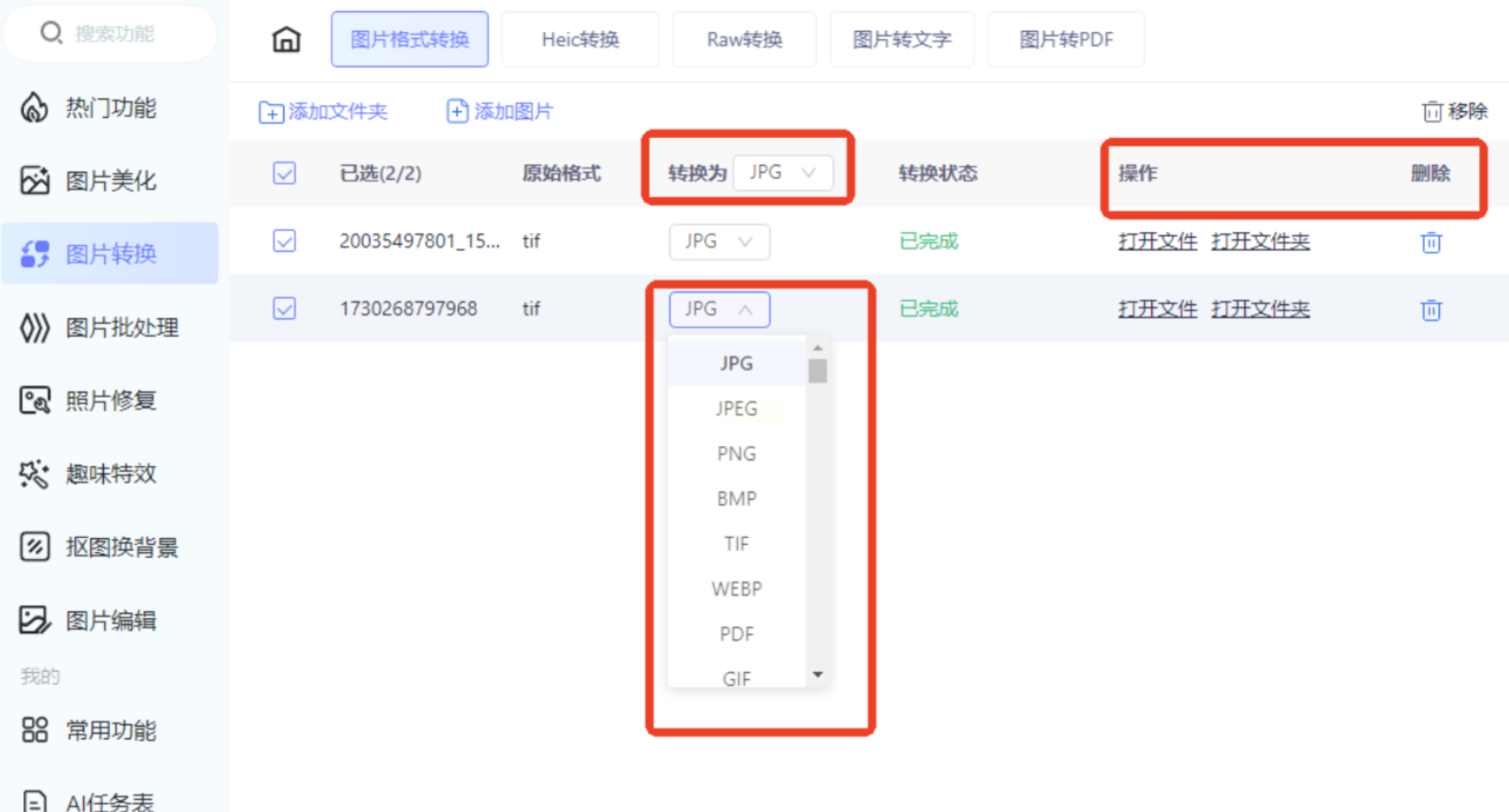 1. 格式选择:在首页点击“图片格式转换”功能,进入专属转换界面。平台将自动分类显示常见格式类型,可通过顶部导航栏筛选“TIF/JPG”转换选项。