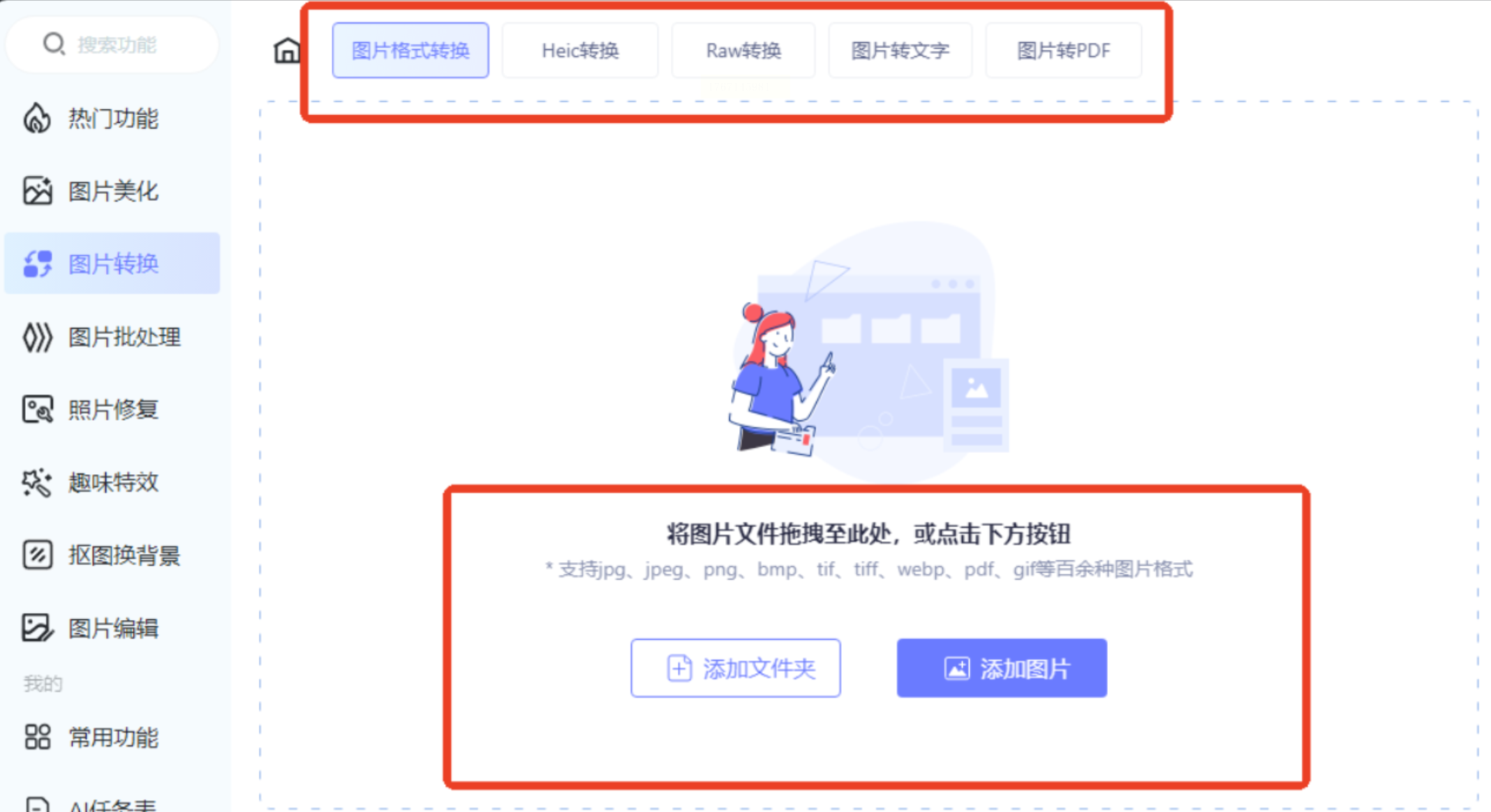 改图鸭作为一站式图像编辑平台,集成了格式转换、图片美化、证件照处理等多种功能。其图片格式转换模块支持上百种格式互转,操作逻辑清晰,适合需要兼顾修图需求的用户。