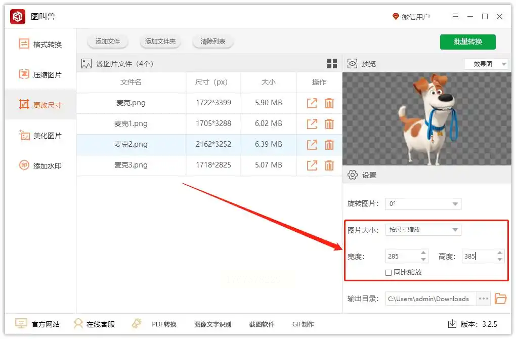 - 固定比例缩放:勾选「保持比例」后,输入宽度或高度任一参数,另一参数将自动按比例计算,避免图片变形。