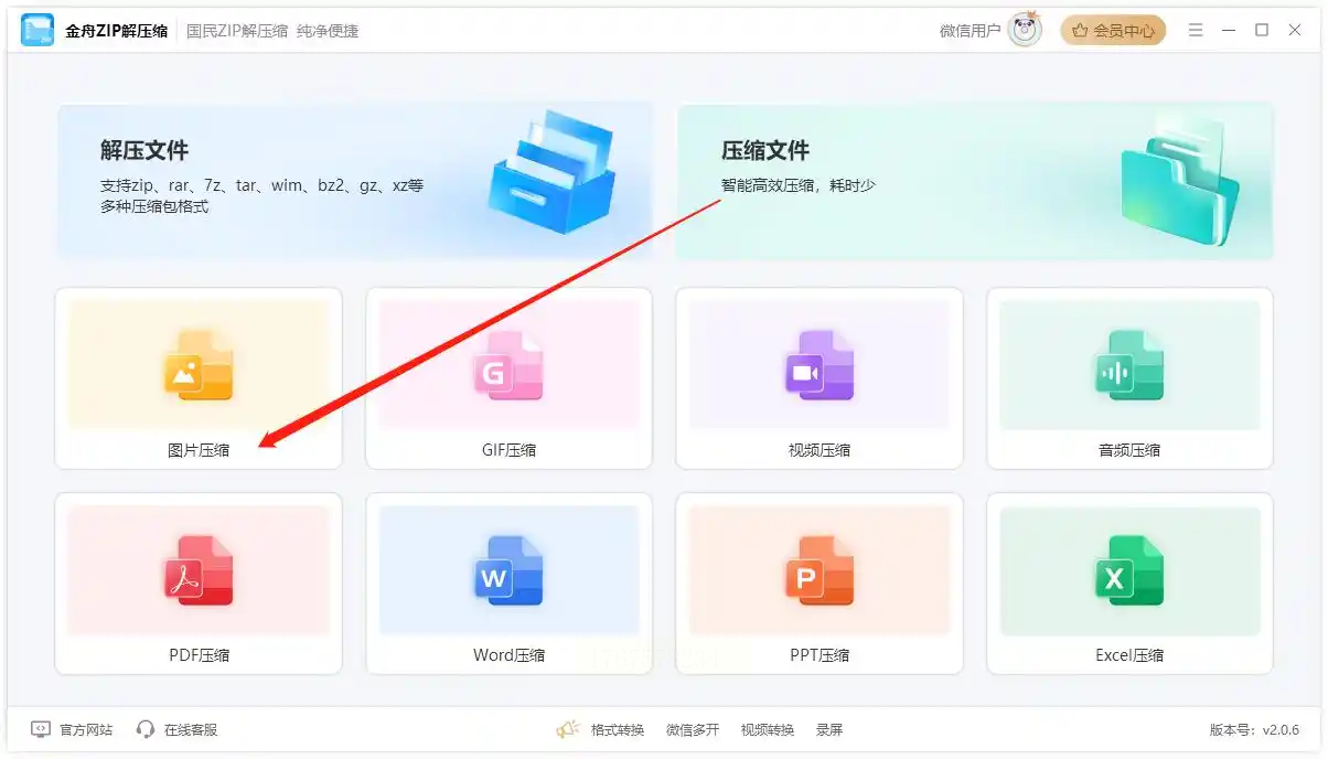 1. 选择功能:打开金舟软件,点击「图片压缩」模块,进入参数设置界面。