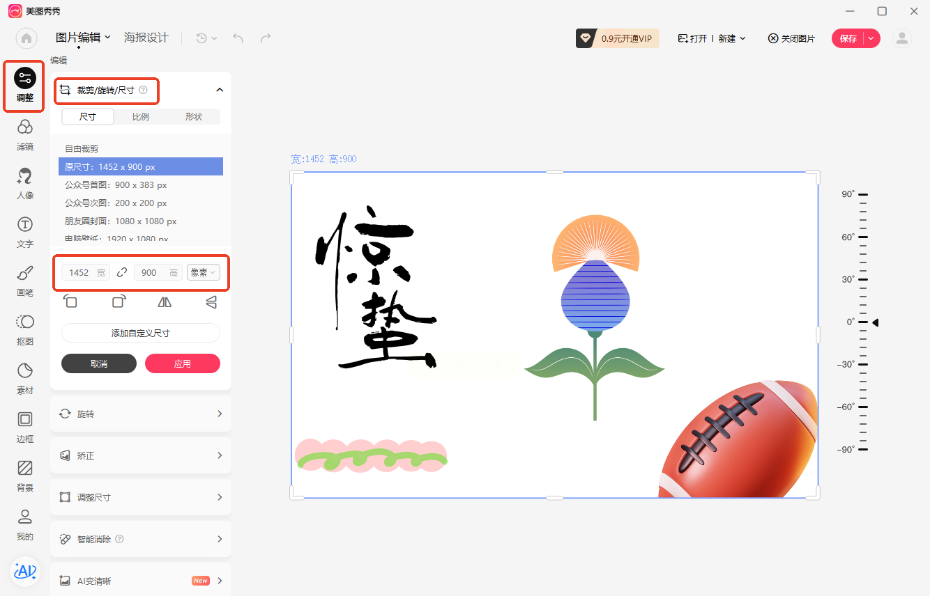 2. 进入尺寸设置:在左侧工具栏找到「裁剪」选项,点击后选择「调整尺寸」按钮。