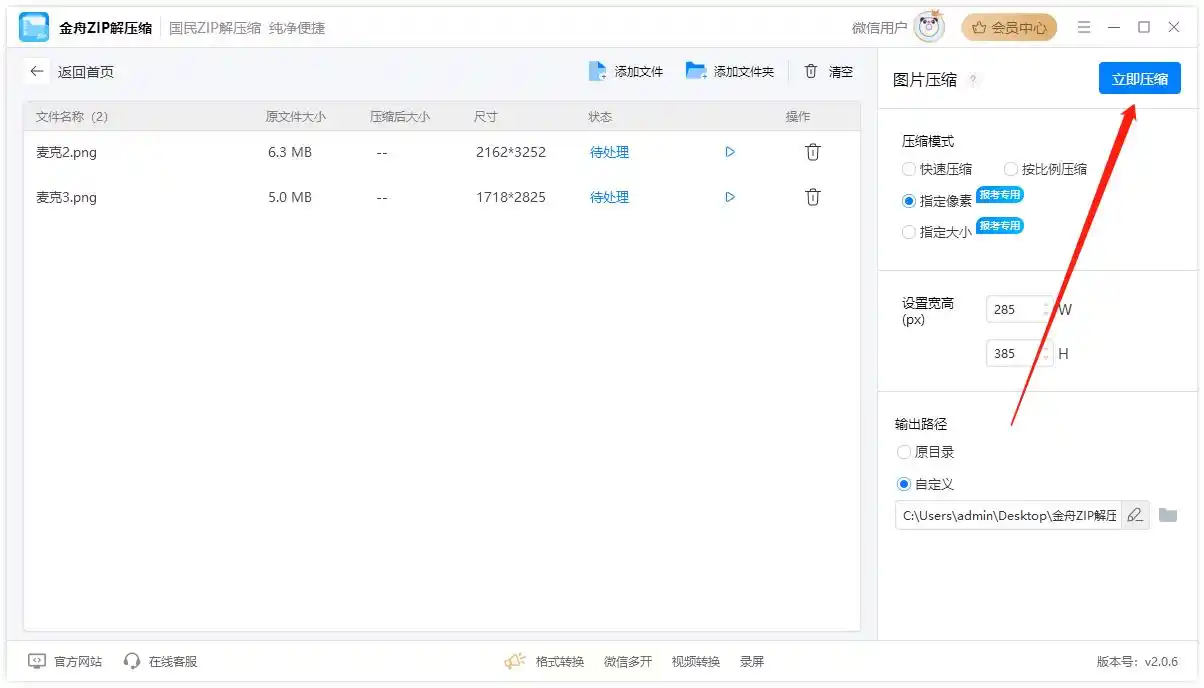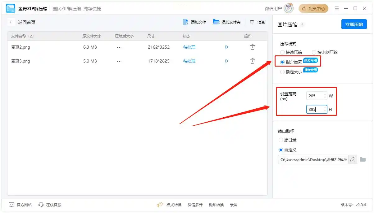 - 压缩类型:选择「尺寸压缩」,输入目标宽度/高度(如“600×400”)。