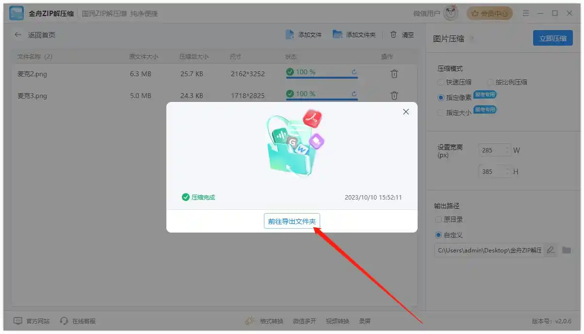 4. 开始压缩:点击「立即压缩」,软件按参数处理图片,完成后显示“压缩率提升XX%”等优化数据。