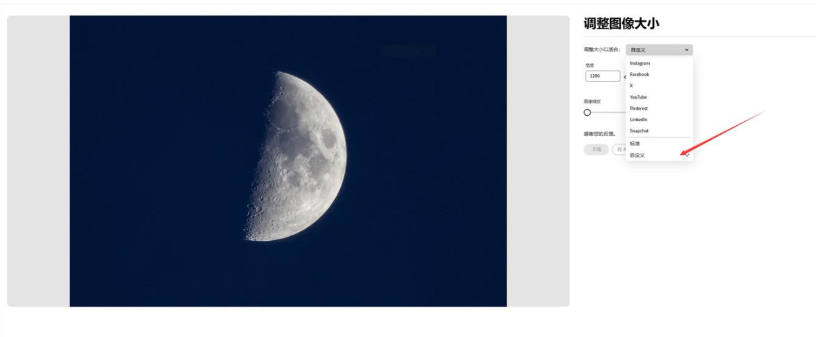 - 选择「Custom Size」,输入宽度/高度(如“1920×1080”),支持切换单位(像素/厘米/毫米)。