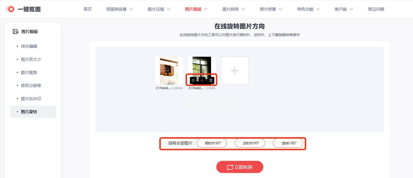 步骤1:打开支持图片旋转的在线工具(如[在线图片编辑平台],可自行搜索正规平台),进入"图片编辑"页面。