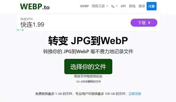 正如其名,webp.to网站主要提供转换为WebP格式的服务。操作流程极其简单:上传JPG,选择WebP,转换,下载。对于快速处理单张或少量图片非常便捷。然而,当需要转换的图片数量很大、或者单张图片体积较大时,可能会受到上传速度的限制,整体转换时间也会相应增加。