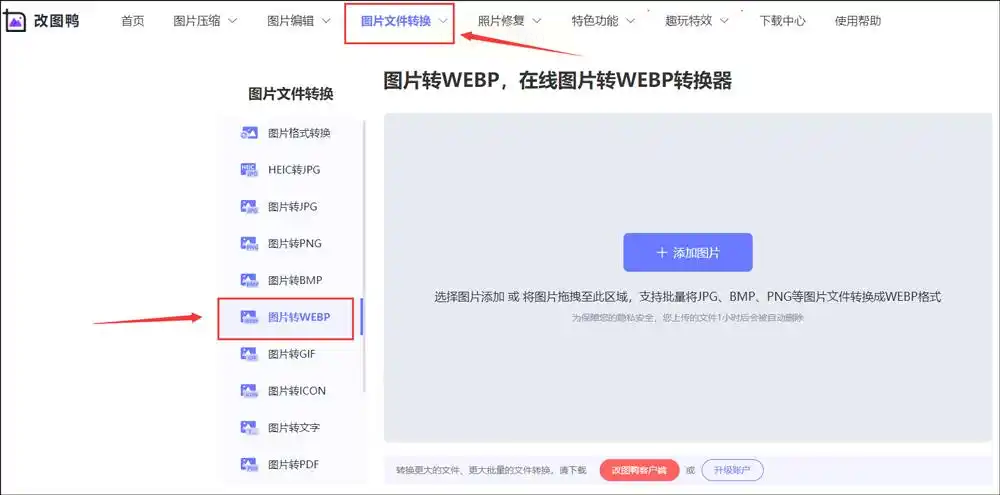 改图鸭是一个专注于图片处理的在线网站。进入其官网后,通常可以在导航栏找到“图片转换”或类似功能。选择“转WebP”专项功能,按照页面提示上传你的JPG图片。它同样支持批量操作,上传后点击转换按钮,处理完成后下载即可。在线工具的便利性在于无需安装,但同样需考虑文件上传带来的网络依赖和潜在隐私考量。