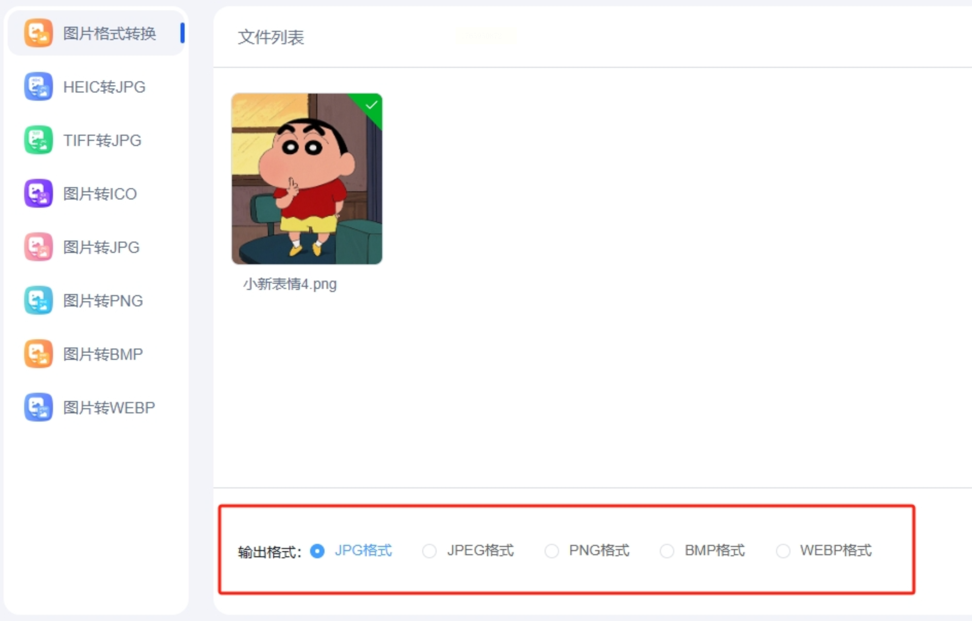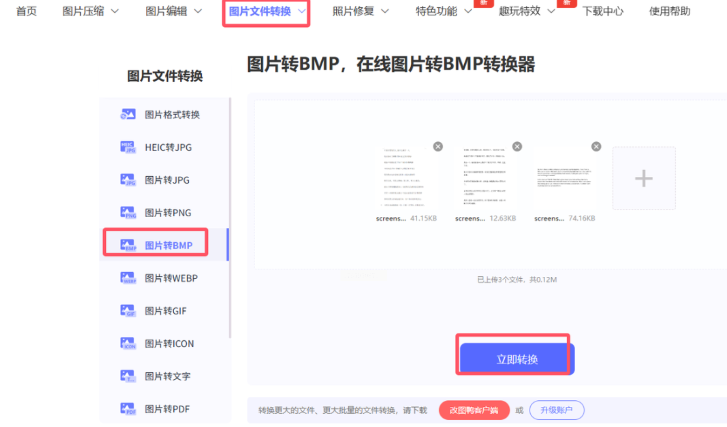 3. 在格式选项中选择“BMP”,若需批量处理,可继续上传其他PNG文件