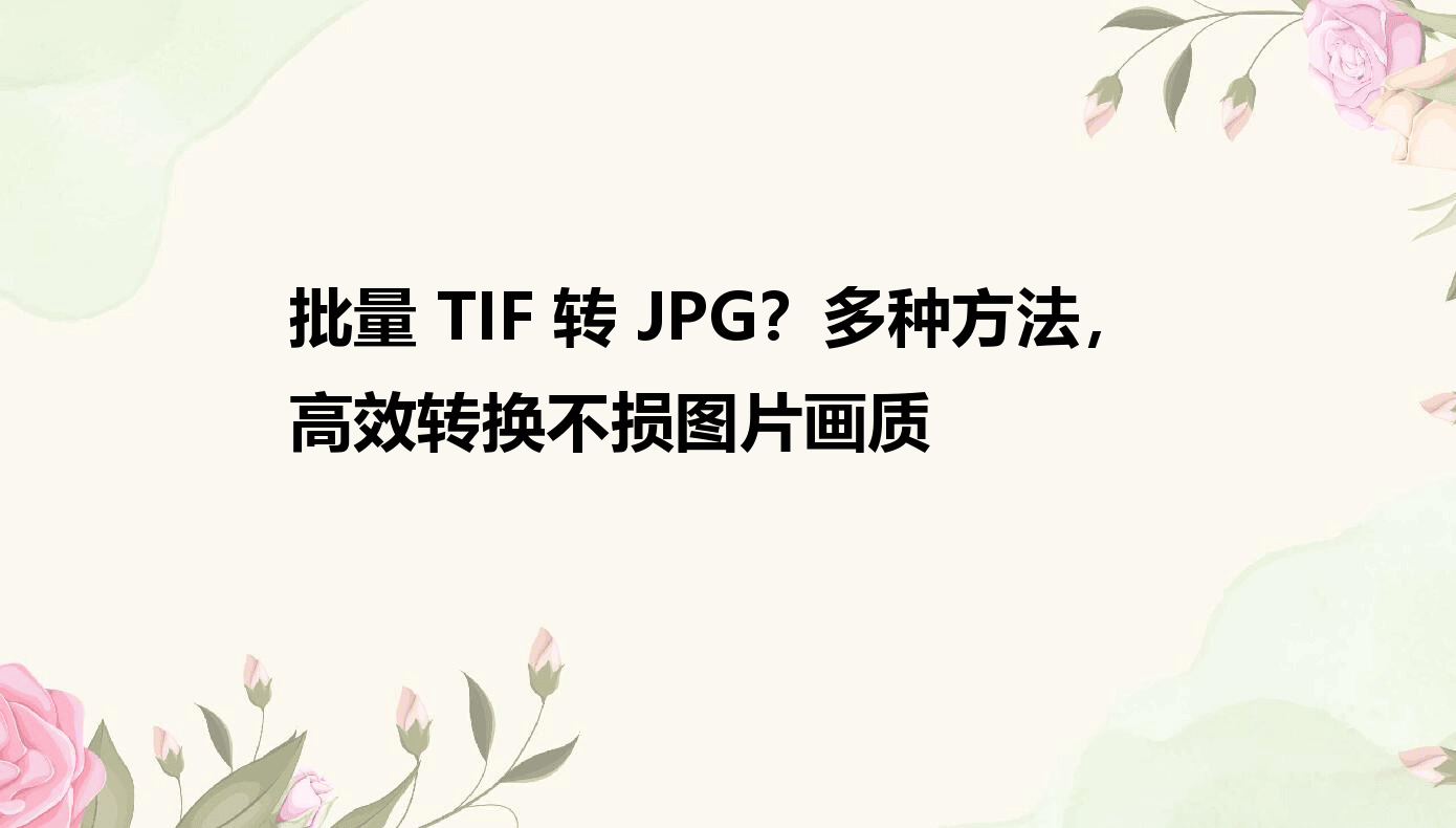 在数字图像处理中,TIF和JPG是两类常见格式。TIF凭借无损压缩和高画质特性,在专业领域应用广泛;而JPG以体积小、兼容性强著称,成为日常分享、文档插入、网络上传的首选格式。当你需要将专业的TIF图片转为通用的JPG格式时,格式转换的效率和稳定性就变得格外重要。接下来,我们将介绍5种简单高效的转换方法,让你轻松应对不同场景下的格式需求。