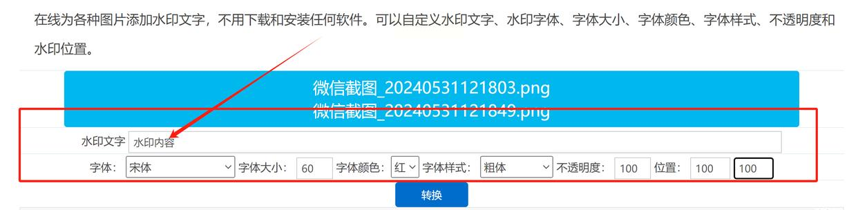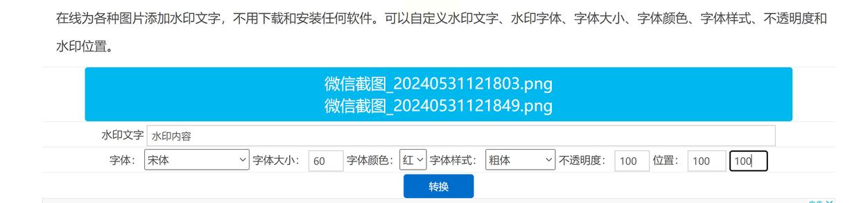3. 在网页提供的编辑区域内,输入你的水印文字,并简单地设置一下字体、颜色和位置(通常也是几个固定的角落位置可选)。