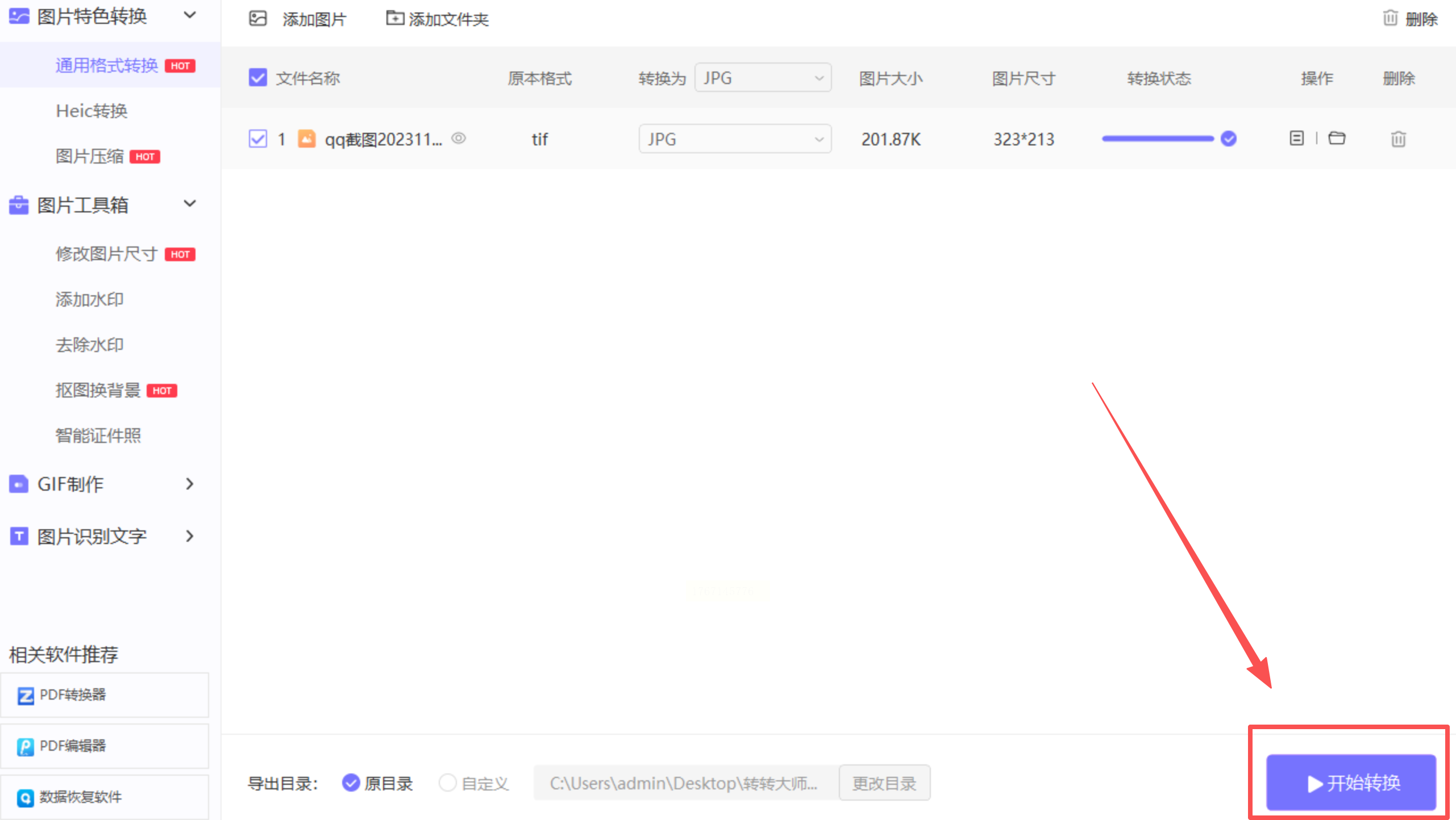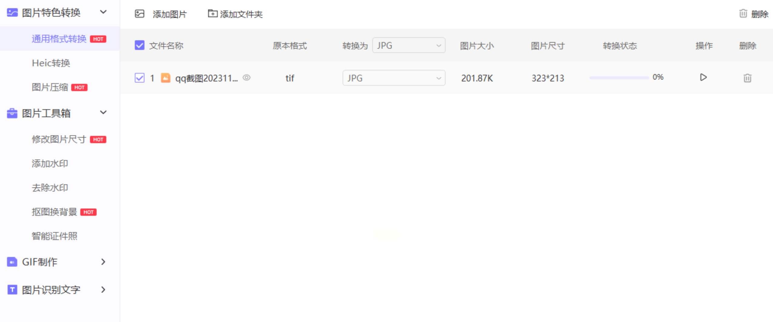 2. 选择"图片格式转换"功能,上传TIF文件(支持单张或批量上传);
