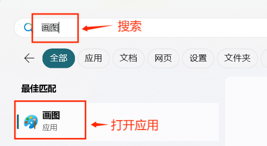 步骤一:点击开始菜单,在搜索栏输入“画图”并打开应用。