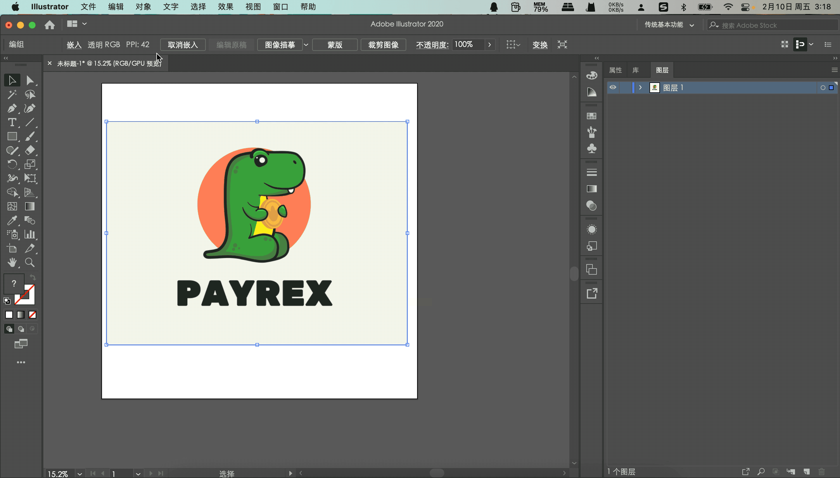 步骤二: 用鼠标选中这张图片,然后点击顶部菜单栏的“对象”。在下拉菜单中找到“图像描摹”选项,并点击“建立并扩展”。软件会自动将位图转换为矢量路径。
