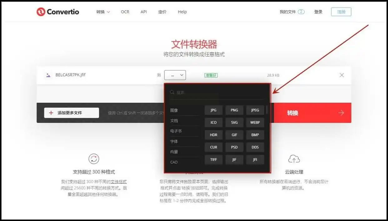 步骤一: 打开Convertio网站,在首页就能看到文件转换的入口。点击“选择文件”按钮,从你的电脑中选取需要转换的JPG图片。