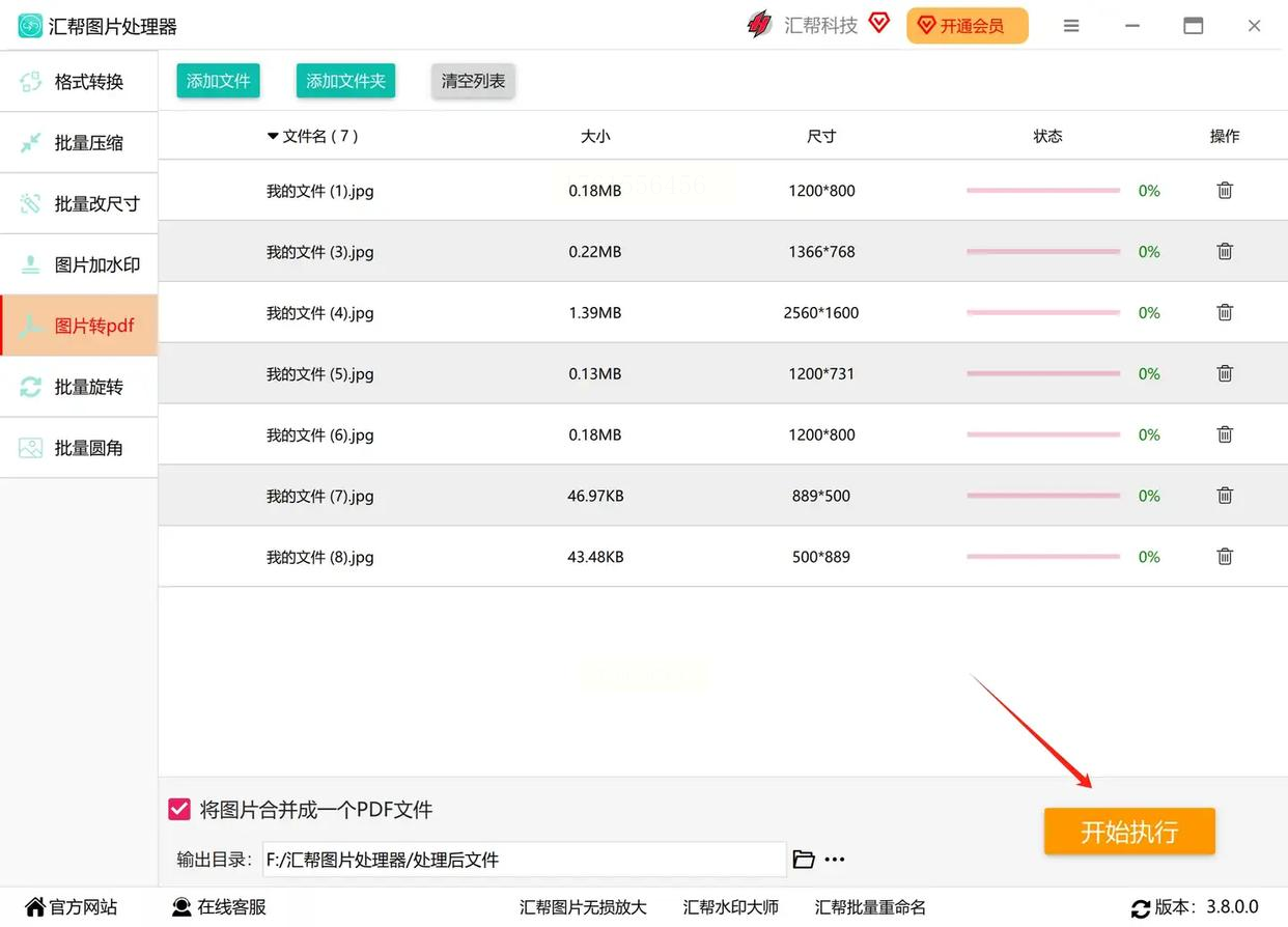 6. 开始转换:确认所有设置无误后,点击右下角的“开始执行”按钮,软件就会自动处理图片,进度条走完就大功告成啦。