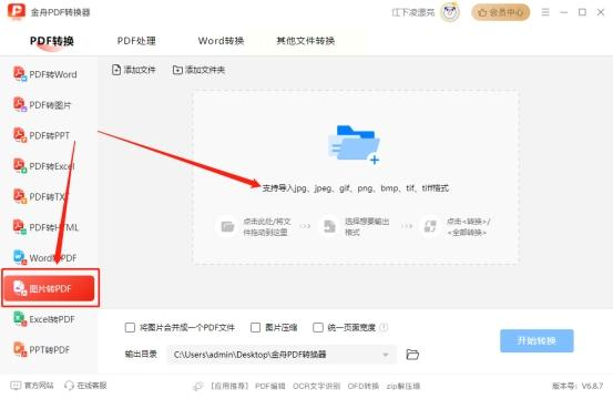 1. 打开软件:安装并打开金舟PDF转换器,在功能菜单里找到“图片转PDF”选项。