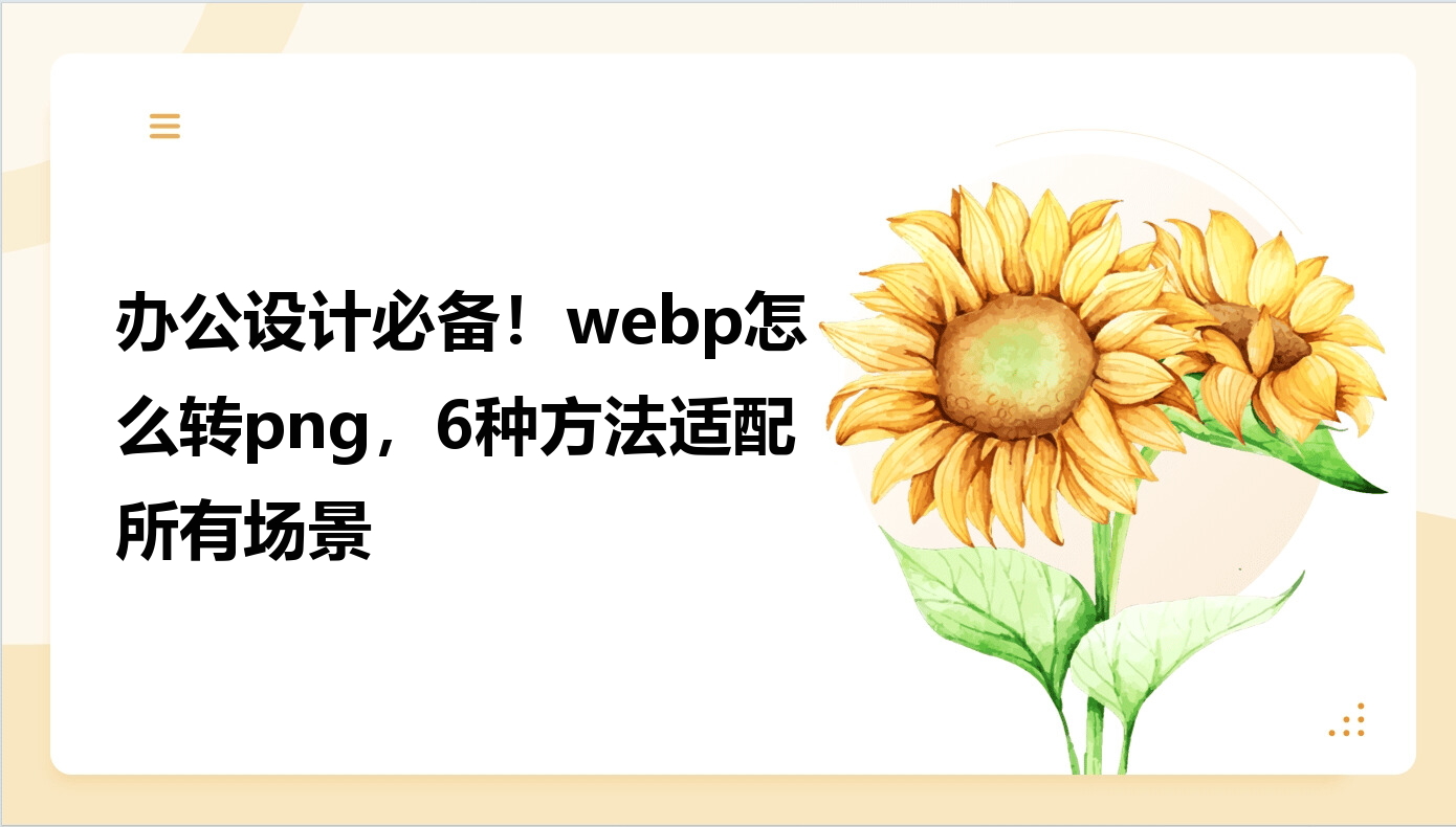 搞懂webp 怎么转 png,就能轻松解决设计、运营工作中图片格式不兼容的核心难题,不管是一次性批量转换大量素材、应急单张快速处理,还是追求画质无损、保留透明背景的专业需求,文中 6 种方法都能完美适配。所有方法均免费无水印,操作简单易上手,还能避开水印、卡顿、画质受损等常见坑点,大幅提升办公效率,省下的时间可以专心打磨内容与设计。建议直接收藏这份实用攻略,以后再遇到 WebP 转 PNG 的需求,随手就能用,高效又省心!