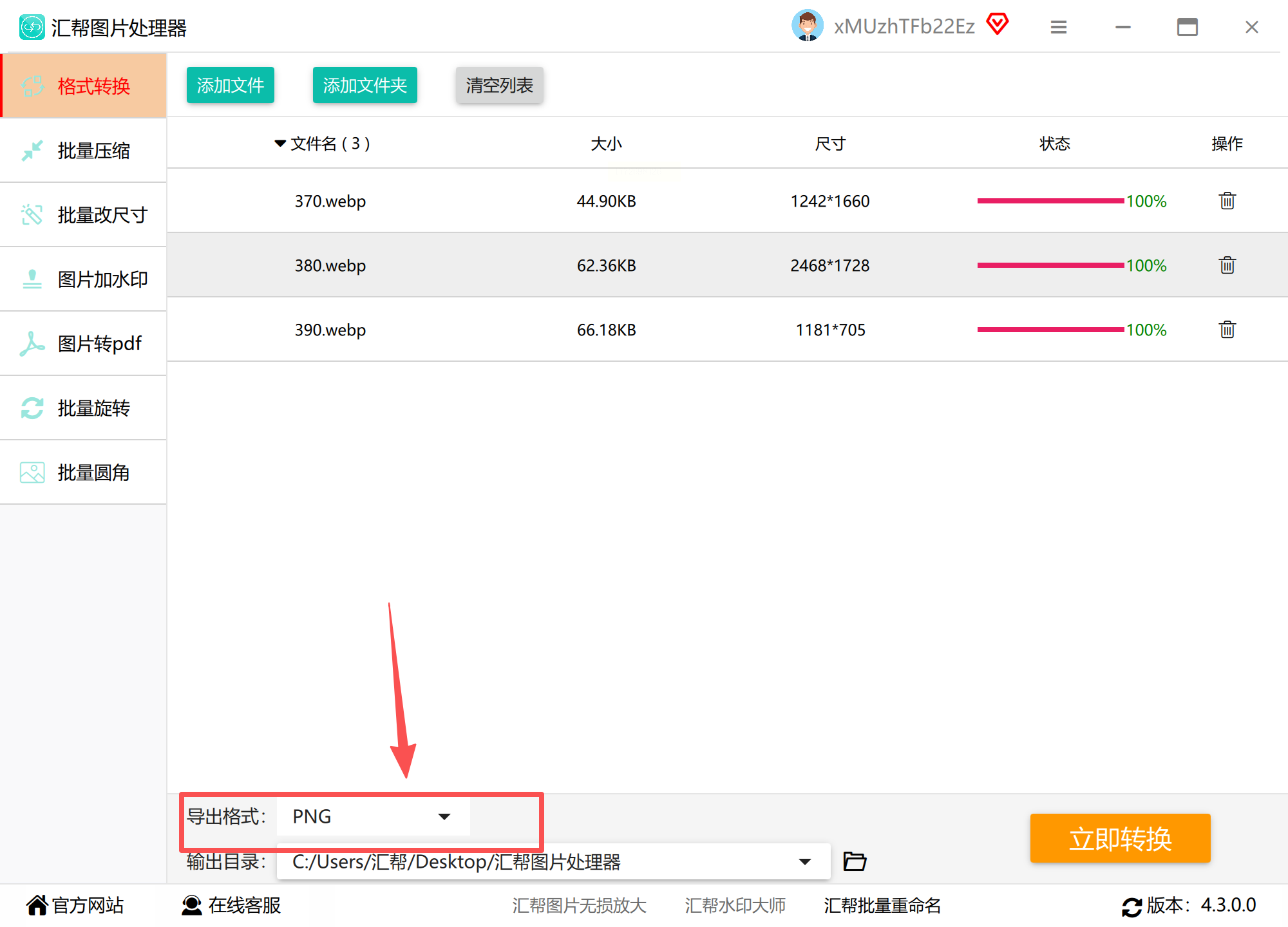 2️⃣ 格式选择稳准狠:选好文件后,在导出格式里直接挑PNG,它支持20多种格式转换,PNG选项就在最显眼的位置